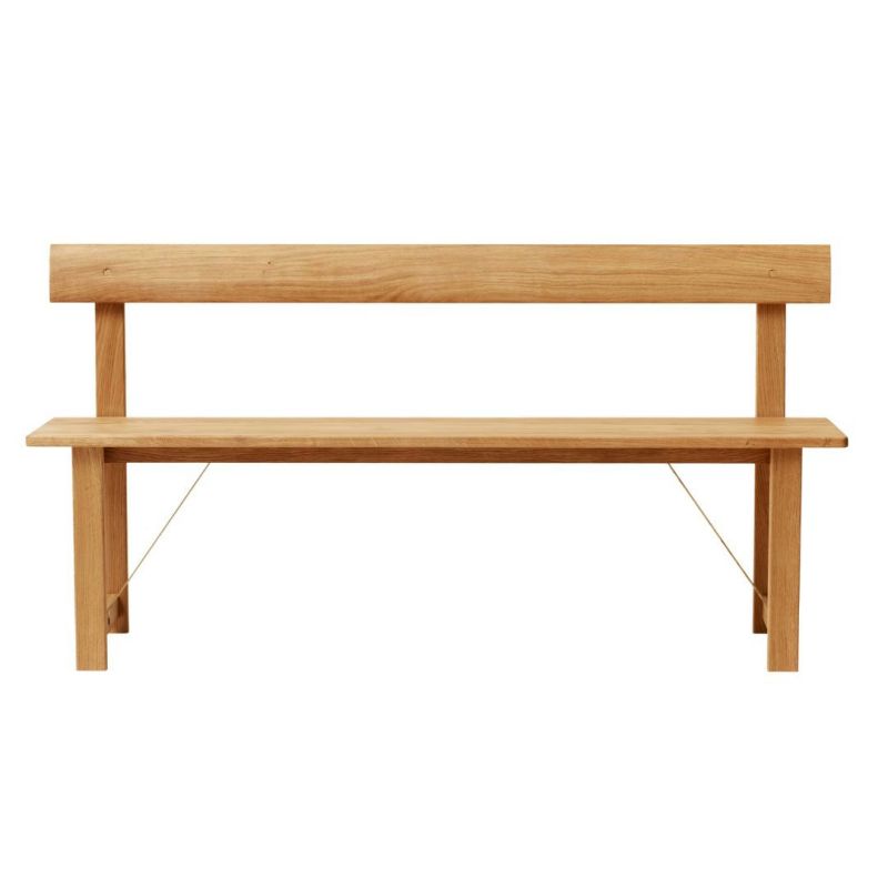 Sharp lines and natural warmth. Position Bench 155 has sharp horizontal and vertical lines that create a distinctive silhouette that contrasts with the organic look of the solid oak. The bench combines the warmth of the material with a clean, minimalist design. The slightly angled backrest provides extra support, while the brass detailing on the underside adds craftsmanship and sophistication. The bench is ideal for three people and fits most dining tables. The leather cushion is optional for extra comfort. h2>