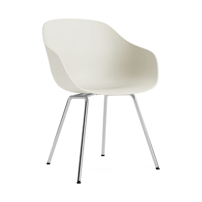 The AAC 226 has a slim steel structure with four slender, angled legs for stability. The curved shell with slightly raised back provides comfort and support, while the low armrests make it easy to slide the chair under a table. The seat is deep and inviting, designed with both aesthetics and functionality in mind. The base is available in black powder coating or chrome, and the recycled plastic shell is available in multiple colors and upholstery options. With its many design combinations, the chair is suitable for business, public spaces and private homes.