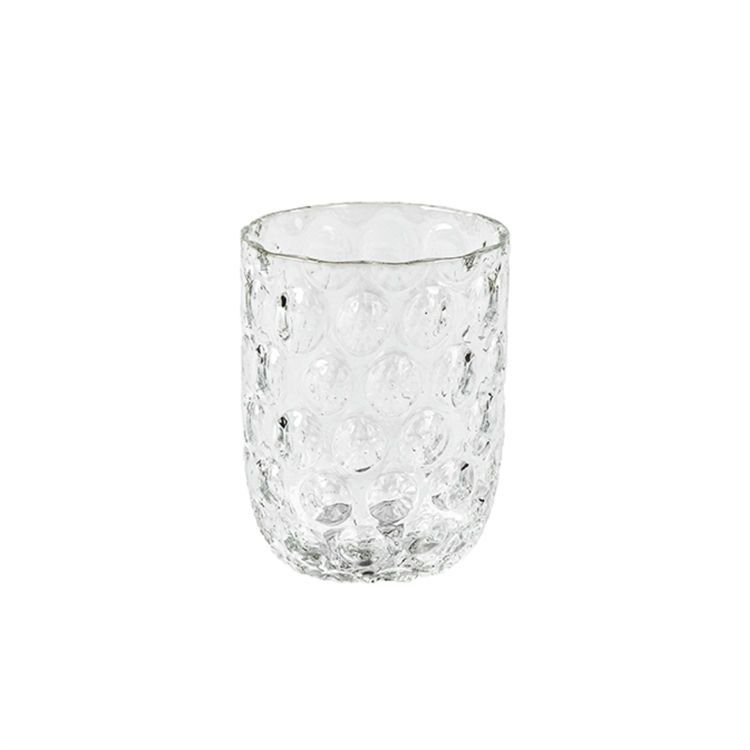 Kodanska's Danish Summer Tumbler with large drop pattern can be used for both hot and cold drinks, for storing writing utensils or small items. Each glass is mouth-blown and has a rounded wooden shape, ensuring that all glasses are the same size, although each one has its own unique color and pattern.