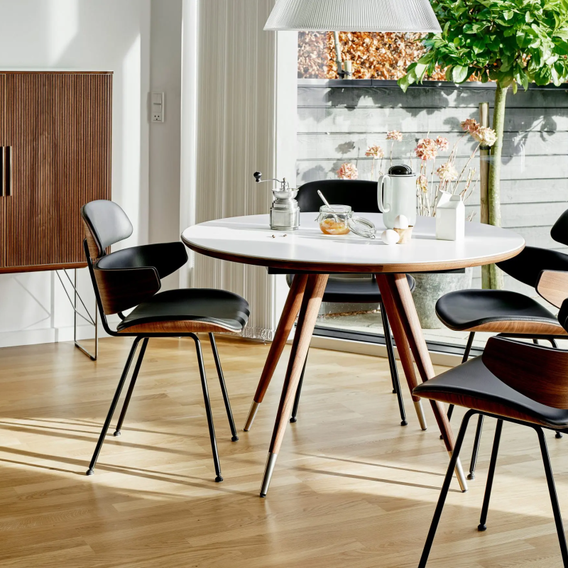 GM 3900 Edge dining table, designed by Nissen & Gehl MDD, is thoughtfully crafted down to the smallest detailwhether were talking aesthetics or functionality. The table legs are positioned underneath the tabletop, making it easy to place chairs all the way around. The dining tables organic tabletop is completed by a unique edge profile that, in both a sharp and elegant way, adds to the tables distinctive character.