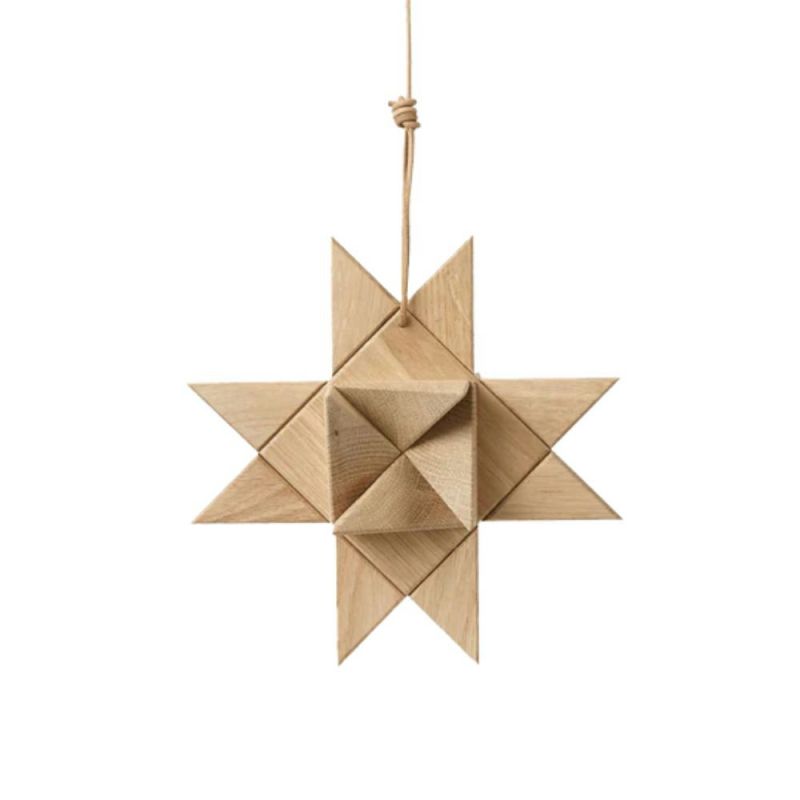 The Fröbel star, a classic Christmas tradition recreated in solid oak with soft edges and a leather string for hanging. Inspired by woven paper stars that evoke memories of childhood Christmases. Beautiful solo or in a group.
