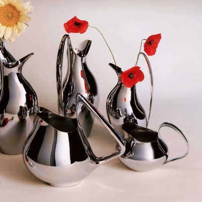 The Jug 02 was originally crafted in sterling silver in 1975 as a collaboration between the Danish artist Henning Koppel and Georg Jensen's silversmith in Copenhagen. For the first time, it is now reissued in stainless steel. The surface of the jug is hand-polished for several hours to achieve a mirror-like finish, and the design retains the organic, sculptural forms that Koppel's iconic jugs are known for.