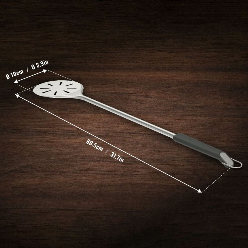 An ultra-thin pizza peel in stainless steel - perfect for turning pizzas inside the pizza oven. Made of stainless steel and polypropylene.