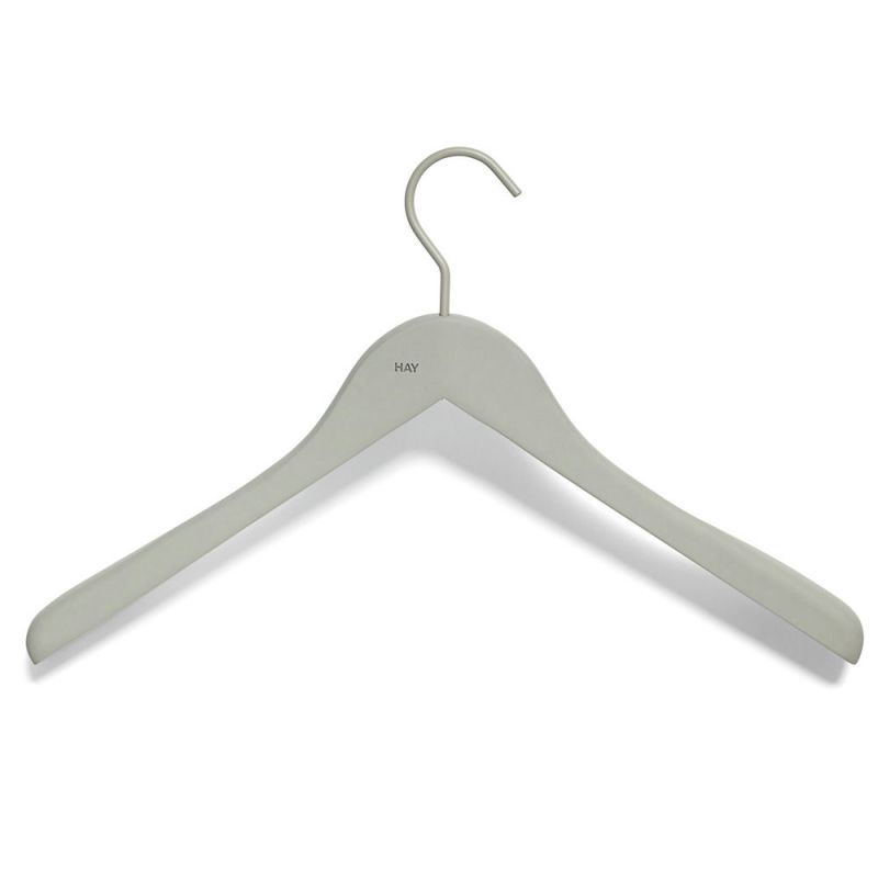 The Soft Coat Hanger is a wooden hanger with wide shoulders and a matte rubber surface that provides extra friction to keep coats and jackets in place.