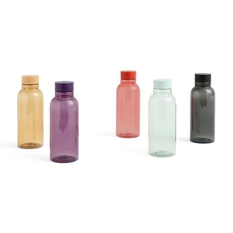 Designed by Naoto Fukasawa for HAY, the Miz water bottle is simple and colorful with a minimalist look. The bottle has a slim shape with clean lines and is made from recycled PET. The removable silicone ring makes cleaning easy. Miz is available in different sizes and colors with matching lids and can be used both for cooling in the fridge and on the go.