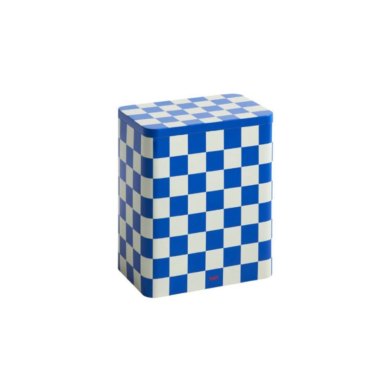 Tin Containers colorful storage with graphic patterns. HAY's Tin Containers are decorative and functional storage boxes with colorful graphic designs. Perfect for dry goods or as stylish storage in the home. Available in many sizes, shapes and patterns.