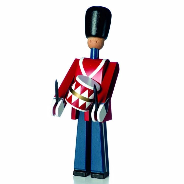 The Kay Bojesen Drummer is one of a small family of three. The remaining family members are the Standard Bearer and Private with Rifle - all designed by Kay Bojesen in 1942. The wooden soldiers are part of a larger figurine collection that Kay Bojesen is best known for today. The Kaj Bojesen figurines have been a classic that has been passed down through generations and remain an ideal gift idea for events such as christenings, weddings and confirmations.
