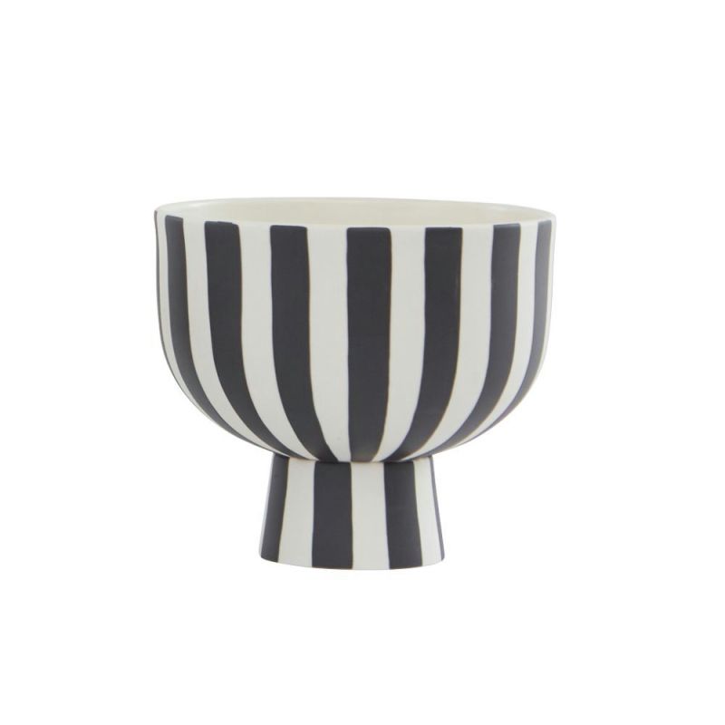 "The Toppu bowl is characterised by a graphic, clean-lined design that adds a decorative and modern touch to your interior. The bowl can be used as a plant pot cover, but it is also food approved and therefore perfect for serving fruit and the like. The bowl is handmade in 100% stoneware, giving each product a unique look."