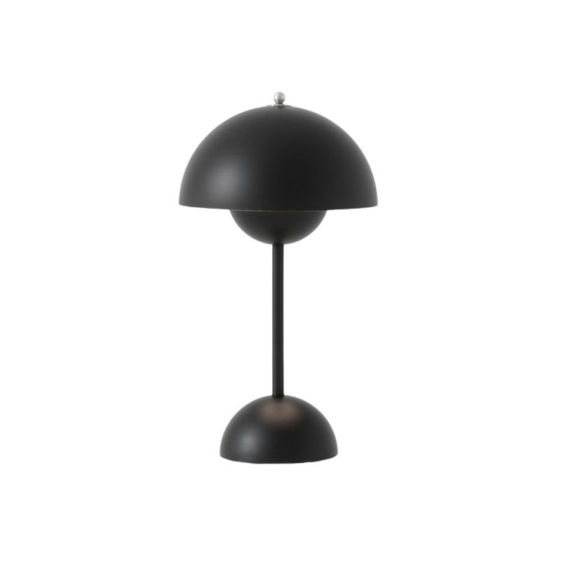 The Flowerpot lamp designed by Verner Panton in 1968 is a well-known and popular design. The VP3 table lamp is available here as a beautiful portable version. The VP9 portable table lamp is made of Polycarbonate, which makes it lightweight and easy to transport. The lamp can hold power for up to 10 hours and is charged with magnetic charging. The cable is included.