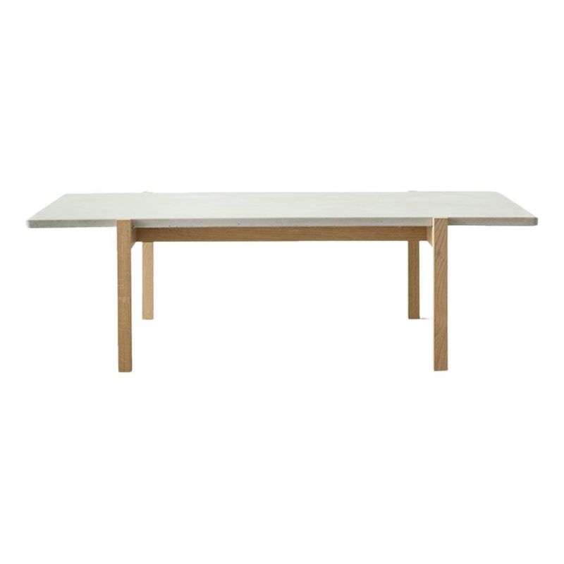 Eugene Lounge and Coffee Table. Eugene is an elegant and simple coffee table with a rectangular shape that is easy to furnish. Available with light or dark oak frame and light or dark concrete tabletop, perfect for both private and public spaces.