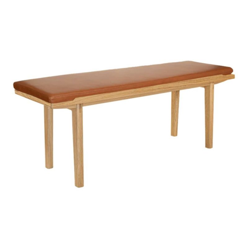 KA53 Stool in solid oak. KA53 is a smaller version of the popular KA60 bench and combines function and aesthetics. The stool is made of solid oak and comes with an elegant leather cushion for extra comfort. With its timeless design and compact format, the KA53 fits perfectly in the hallway, bedroom or as extra seating in the living room. A beautiful and practical addition to the home.