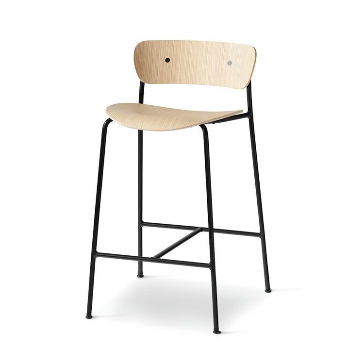 The Pavilion bar stool from Andtradition, designed by Anderssen & Voll, has style and elegance in focus. The bar stool is made in both a high version AV9 measuring 95 cm in height and a lower version AV7 measuring 85 cm. The Pavilion bar stool is made of molded veneer with a lacquered steel frame and is available in oak, black lacquered oak or lacquered walnut,