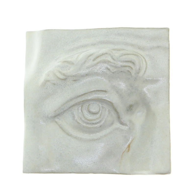 Right Eye Antique White. Relief of a right eye, handmade in Aarhus with inspiration from ancient sculpture. Created for wall hanging alone or together with other reliefs. Can be mounted in four ways and invites personal and creative hanging.