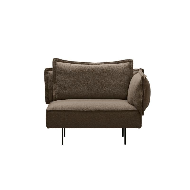 Add warmth and character to your home with this stylish corner chair in soft bouclé. The tactile fabric and simple, organic design make it a natural centerpiece in the living room, bedroom or lounge. The bouclé material has a distinctive texture that both feels comfortable and adds visual depth to the interior. With its comfortable seating experience and rounded shapes, the chair invites relaxation and tranquility.