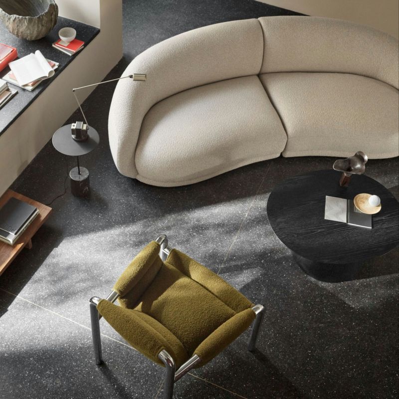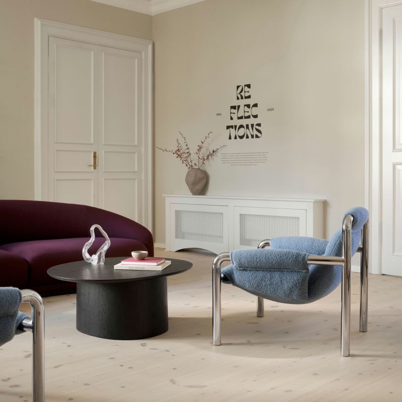 The Kin collection combines soft curves with sculptural design. Each table is built around a solid pedestal and a tabletop in the same form language, rotated to create an elegant interplay between contrast and harmony. A collection that celebrates the strength of repetition and balance.