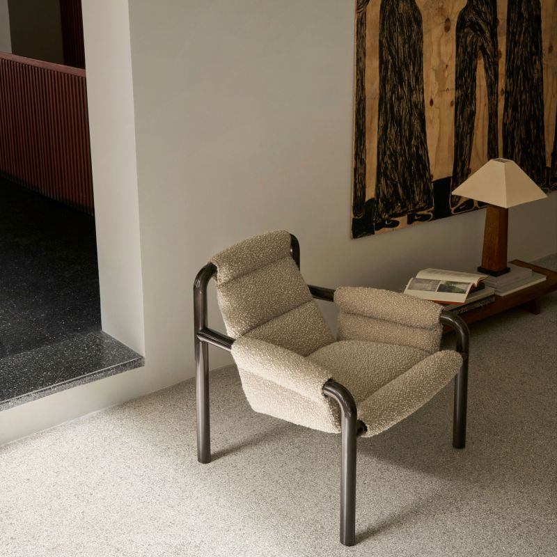 The Atli Lounge Chair is a striking statementbold, sculptural, and modern. Designed by the New York-based Atlason Studio, it is characterised by its oversized tubular steel frame and generous padding with precisely crafted details.