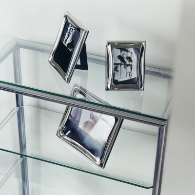 This photo frame carries the curvy lines from the popular Cobra collection and is crafted in mirror-polished stainless steela unique way to display your precious memories.