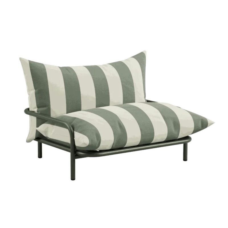 • Material: powder-coated aluminium, Eco-certified textile, olefin, shredded foam, waterproof polyester bag, cut PU foam