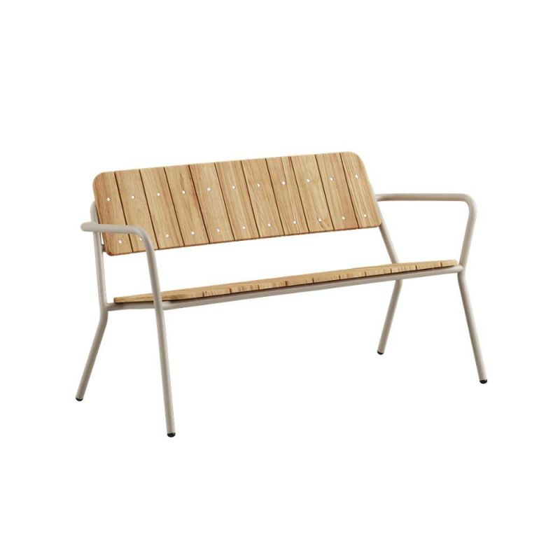 Kirra Patio Bench is an outdoor bench in powder-coated aluminium and FSC®-certified teak (FSC® C190311). The combination creates a light, clean-lined look while offering a robust construction that can stay outdoors all year round. The aluminium frame is maintenance-free and rust-resistant, while the teak adds warmth and over time develops a beautiful, silvery-grey patina. The bench fits perfectly along the house wall, by the dining table on the terrace, or as part of a lounge setting. A simple, balanced design where the materials are allowed to take centre stage. Designed by SACKits Head of Design, Nicolai Rytter.