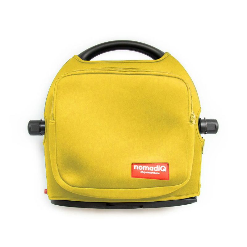 NomadiQ Protection Pouch with pocket in yellow is designed to protect your nomadiQ portable BBQ and E-BBQ from scratches and dents. Made from soft polyester, it ensures that your BBQ remains undamaged. Ideal for safe storage or easy transport, this bag is a must-have for BBQ enthusiasts on the go.