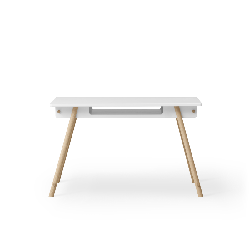 The Camp junior desk is adjustable and with its fine details such as the slightly sloping legs of the base and round sticks on the sides for hanging all kinds of things, this desk is ideal for children's and teenage rooms, but also works beautifully in a corner of the living room or in the corner of the kitchen.