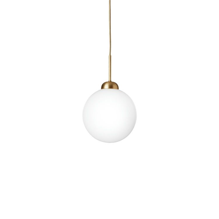 The Apiales 1 pendant is available here with beautiful mouth-blown opal glass, which gives the lamp a pleasant light that does not seem too dominant. The frame of the lamp is made of metal and is available in either brass or black.