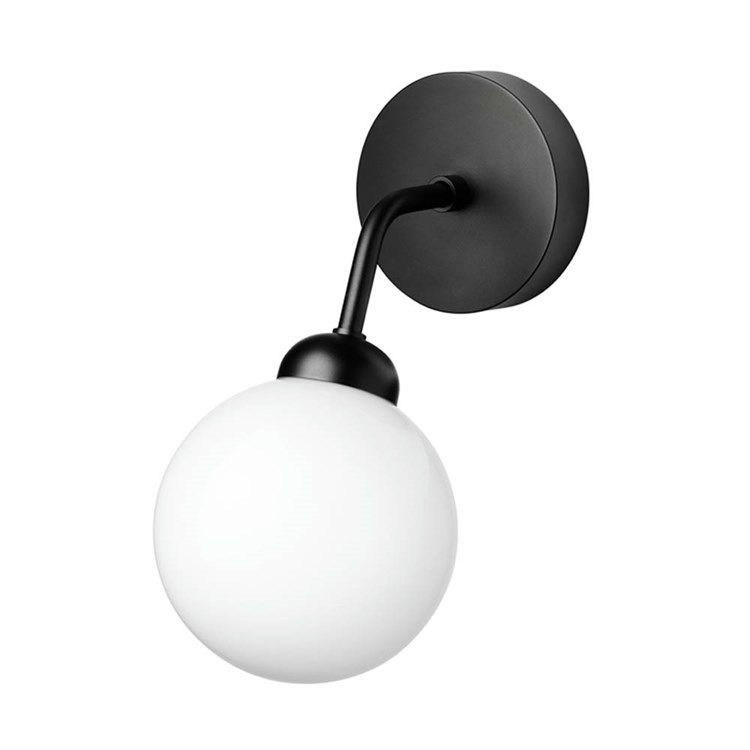 The Apiales Wall lamp is a small, delicate lamp that is perfect for use in the hallway, living room or bedroom and with its mouth-blown opal glass shade, it provides a pleasant and gentle light. The lamp is made of metal and is available in either polished brass or black.