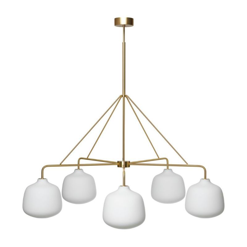 • Materials: brushed clear lacquered brass, mouth-blown opal glass