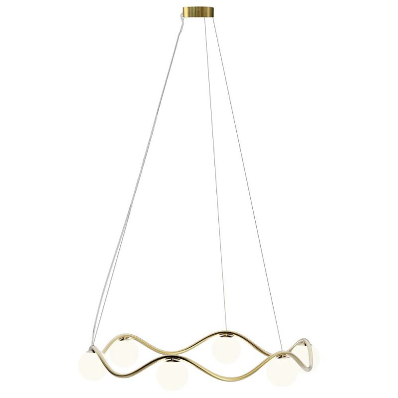 Wave Pendant Light Sculptural Elegance in Brass Wave is a modern chandelier with a sculptural expression, designed for contemporary spaces with a sense of aesthetics. The undulating shape in solid brass hangs elegantly from thin wires and creates a light, floating feeling in the room. The organic silhouette adds both movement and calm, making it an eye-catching centerpiece over the dining table, in the hallway or as part of a larger room installation.