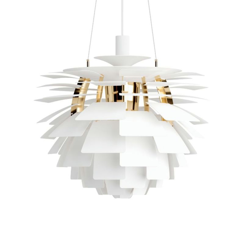 Designed by Poul Henningsen in 1958 for the Langelinie Pavilion in Copenhagen, the PH Artichoke pendant is today an internationally recognized design icon. With its 72 metal leaves distributed in 12 precise rows of six leaves, the lamp ensures a completely glare-free and comfortable light - regardless of viewing angle. The name refers to the characteristic artichoke-like design that spreads the light both inwards and outwards. The PH Artichoke builds on the idea behind PH's previous Septima lamp, combining function with world-class sculptural aesthetics.