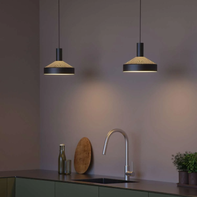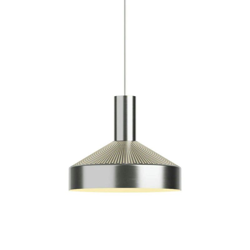 The Dawn pendant is based on the classic workshop pendant, where a laser-cut perforation on the top of the lamp provides a pleasant and spacious illumination. The lamp’s functional lighting comes from the white-painted inner shade and the recessed light source, where the lamp’s characteristic edge creates a more defined direction, while the perforation adds up- and down-light.