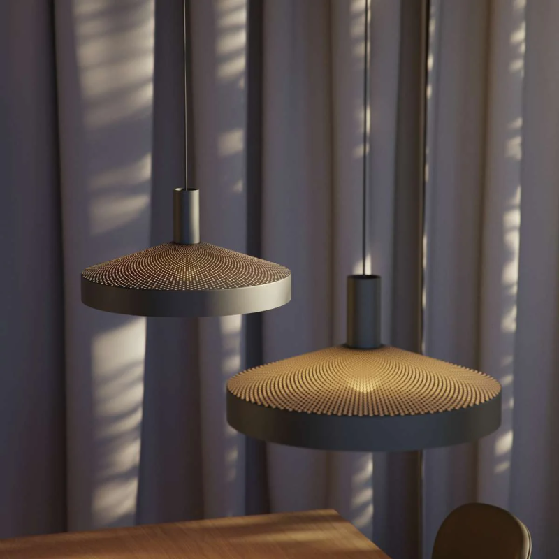 The Dawn pendant is based on the classic workshop pendant, where a laser-cut perforation on the top of the lamp provides a pleasant and spacious lighting. The lamp’s functional lighting comes from the white-painted inner shade and the recessed light source, where the characteristic bend in the lamp’s edge gives a more defined direction, while the perforation adds up- and down-light.