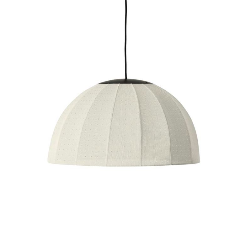 Mollis stands out by being a pendant lamp knitted in 3D, instead of being made of glass or metal. The lampshade is pulled over a metal frame, somewhat like a pullover, which provides a simple construction with minimal material use. The shade can easily be removed for washing or replacement.