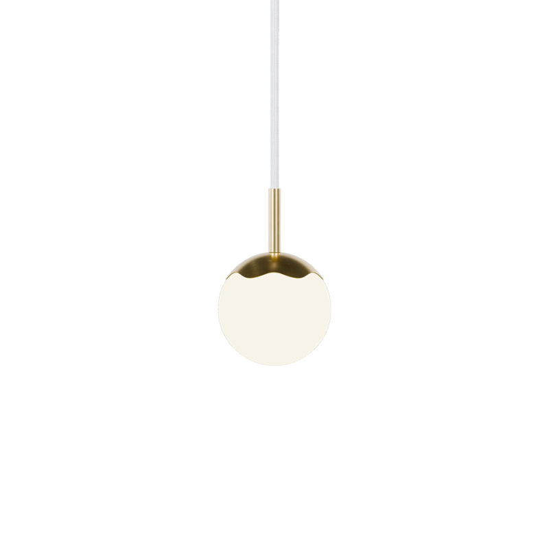 Circle of Life Pendant Ø110 mm with white textile cord is a compact and elegant Scandinavian design lamp. Inspired by lifes ups and downs, the polished brass surface adds warmth and exclusivity, while the opal glass globe emits a soft, diffused light. The white cord highlights the light, Nordic expression.