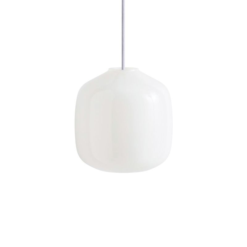 The Buoy Glass Table Lamp from HAY, designed by Aspekt Office, combines simplicity and function. With an opal glass shade and black cord set, the lamp provides atmospheric lighting in bedrooms, hallways, over kitchen islands or dining tables, creating warmth and ambiance in any room. Easy to install and maintain without tools. Available in two sizes with cords in different colors.