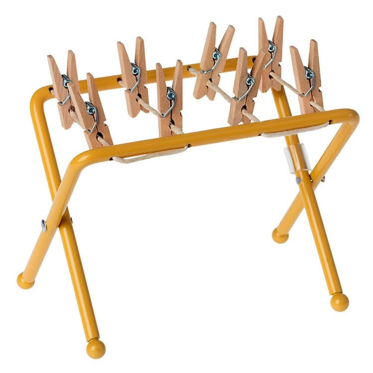When the mouse family needs to hang up their laundry, this drying rack is the perfect choice. It's made for their clothes and comes with small wooden clips to hold the clothes in place.
