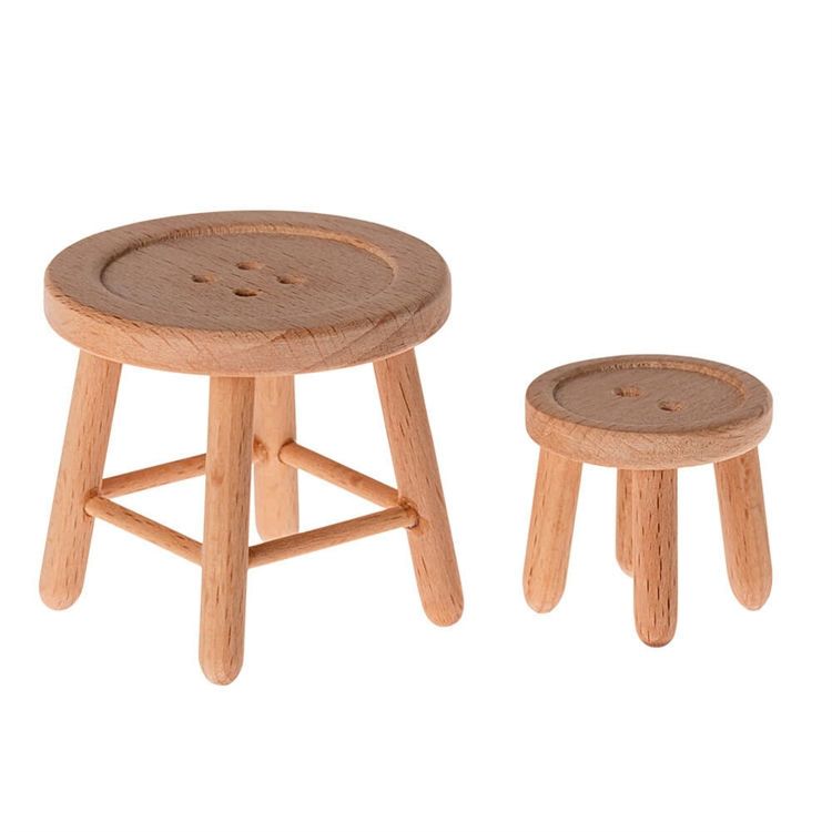This table and stool for the mouse family is designed with inspiration from buttons. It harmonizes well with other mouse furniture and accessories.