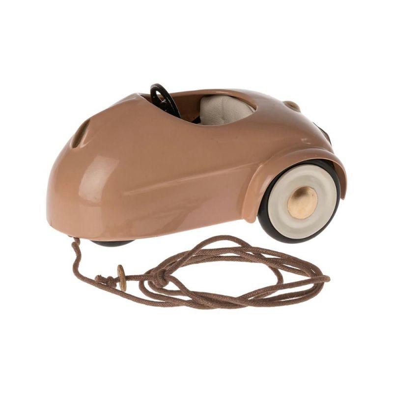The metal car is perfect for the transportation needs of mice. It fits little brother/sister, big brother/sister and mom/dad sizes. The child can pull the car by tying the included string under the car.