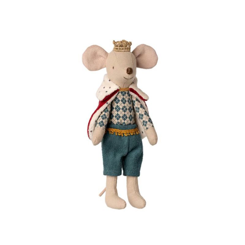 The king mouse in dad size is ready to host at his castle. He is wearing a cape and crown and fits perfectly into the castle hall.