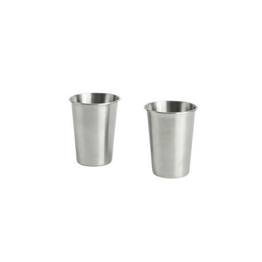 Outdoor Market Steel Cup from HAY Outdoor Market by Jasper Morrison is a durable and functional stainless steel cup for outdoor use. With its simple and sleek design, it is perfect for picnics, camping, or other outdoor activities. Sold as a set of 2 and available in different sizes.