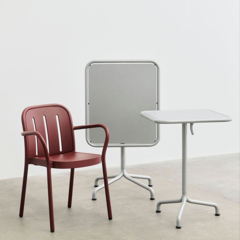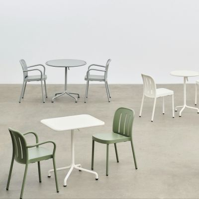 Deville Table er en moderne fortolkning af det klassiske bistrosæt, designet af Julien Renault til nutidens udeliv. Bordet kombinerer robuste materialer med bløde, indbydende former og generøse proportioner, der skaber et tidløst og funktionelt udtryk. Fremstillet af mindst 60 % genanvendt aluminium, er bordet rustbestandigt og bygget til at holde. Den smarte vippefunktion gør det nemt at flytte, folde og opbevare.