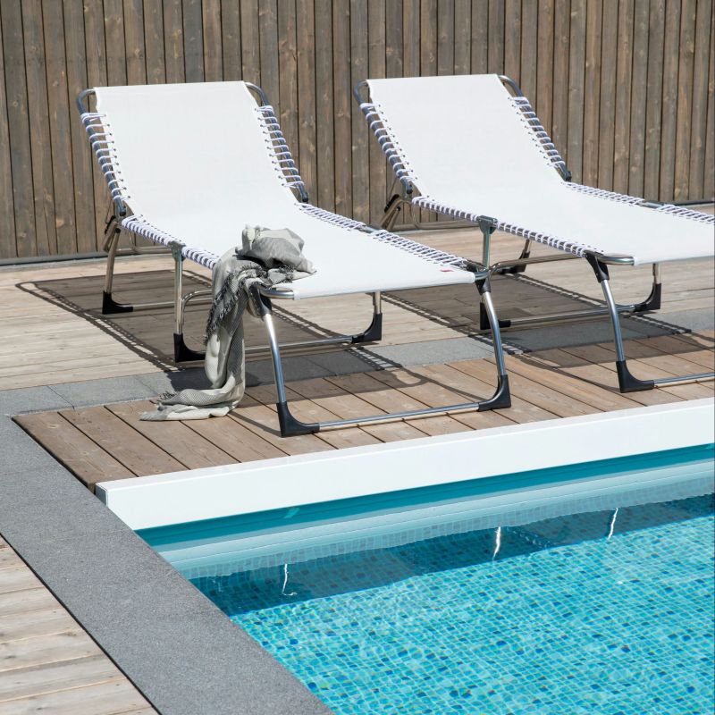FIAM Casanova is a durable and practical sun lounger for outdoor use. The lightweight aluminium construction makes the sun lounger easy to move, while remaining stable and comfortable to use.