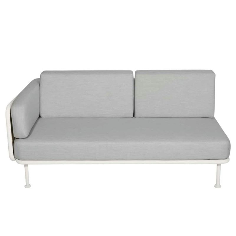 Mindo 100 2-seater left module opens up countless design possibilities for your outdoor space. Use it as a key part of a corner sofa, or combine it with a right module to create an elegant, spacious long sofa. The cushions are upholstered in premium outdoor fabric that withstands the elements, while the comfortable padding ensures a long-lasting and pleasant seating experience. Perfect for creating a stylish and functional seating arrangement under the open sky.
