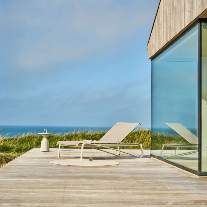 Mindo 105 Sun Lounger is an elegant and minimalist sun lounger, designed with a focus on both comfort and mobility. It features durable Batyline fabric, an adjustable backrest and wheels that make it easy to move around perfect for relaxing outdoors.
