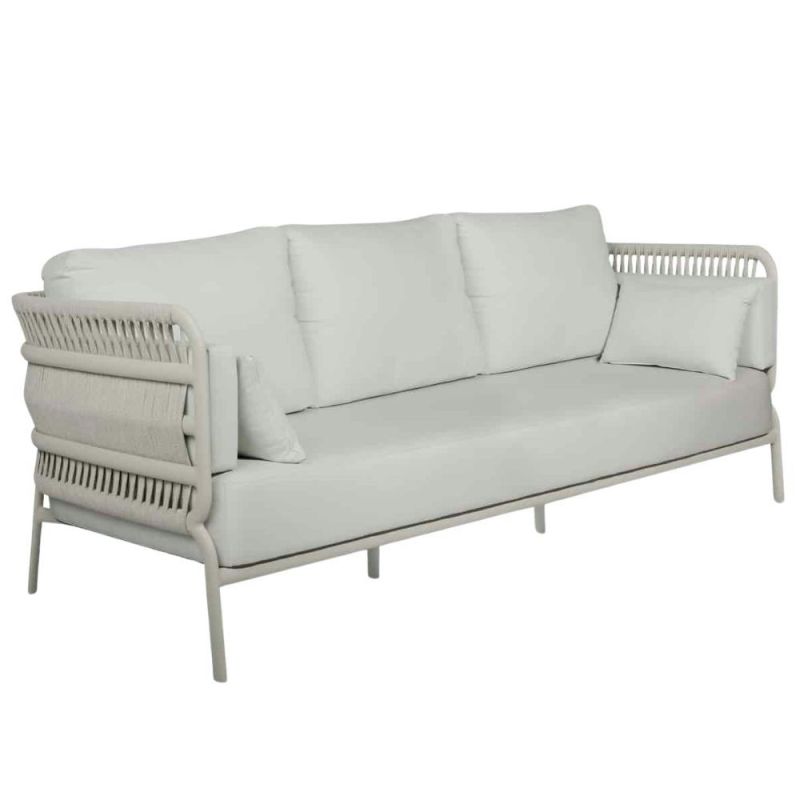Mindo 106 Sofa with seating for three offers a generous 250 cm of seating space and highlights Italian rope weave along with an aluminium frame. The sophisticated design combines comfort and craftsmanship, making it a luxurious addition to any outdoor space.