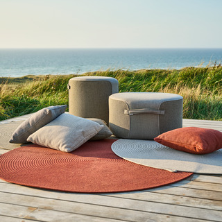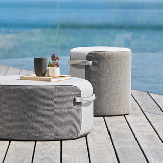 Den lille Mindo 108 puf er inspireret af naturens organiske former og er betrukket med to slags stof for et lækkert udseende. Det praktiske håndtag og kompakte størrelse gør den ideel som uformel siddeplads ved spisebordet eller som ekstra møbel til små rum. Takket være et indre aluminiumsstel er puffen selv med sin lav vægt meget robust.
