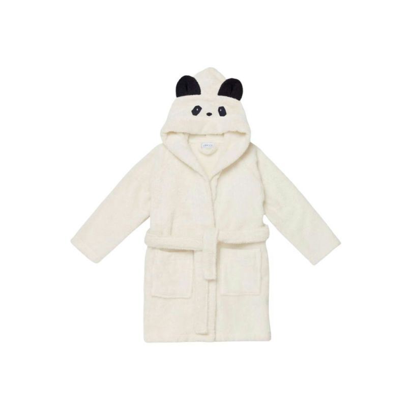 Soft bathrobe in organic cotton with cute embroidered animal details and ears on the hood. The practical press studs at the front help keep the robe in place, while the thick quality keeps your child warm and dry after the bath.