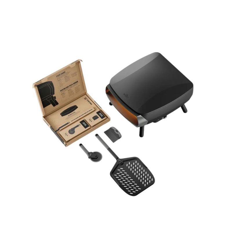 Witt Piccolo Rotante 16" EU Toolbox 3 in black allows you to make authentic pizza anywhere thanks to its compact design. With a rotating stone and C-shaped burner, it ensures even heat, allowing you to make perfect pizzas in under 90 seconds. It is durable, quiet, and efficient and includes a 14" pizza peel, dough scraper, and a cutter.