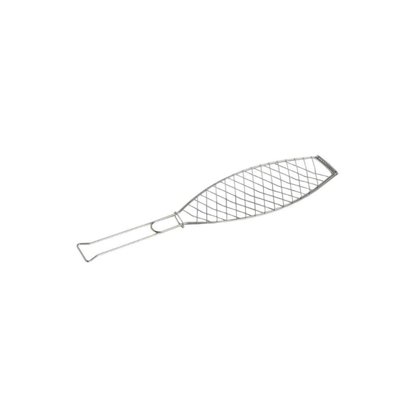 Outdoor Market BBQ Fish Grill from HAY Outdoor Market by Jasper Morrison is a portable grill in stainless steel shaped like a fish. It features long handles for safe use and is perfect for grilling fish and other dishes during outdoor cooking.