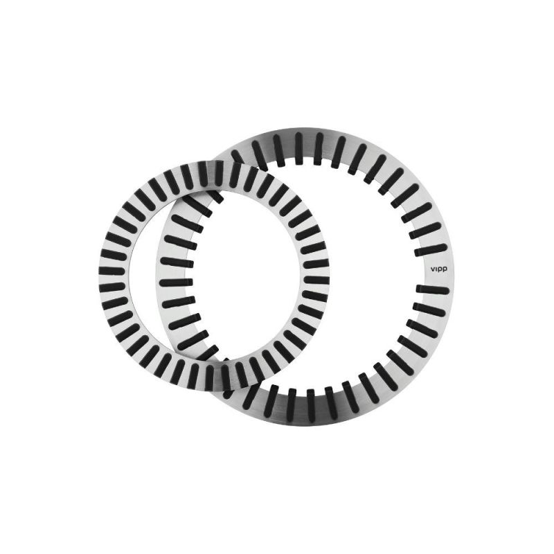 The Vipp potholder set consists of a small and a large potholder that can be put together. The laser-cut steel surfaces are equipped with heat-resistant silicone rubber to protect both table and pots. The set is dishwasher safe and combines functionality with a stylish look.